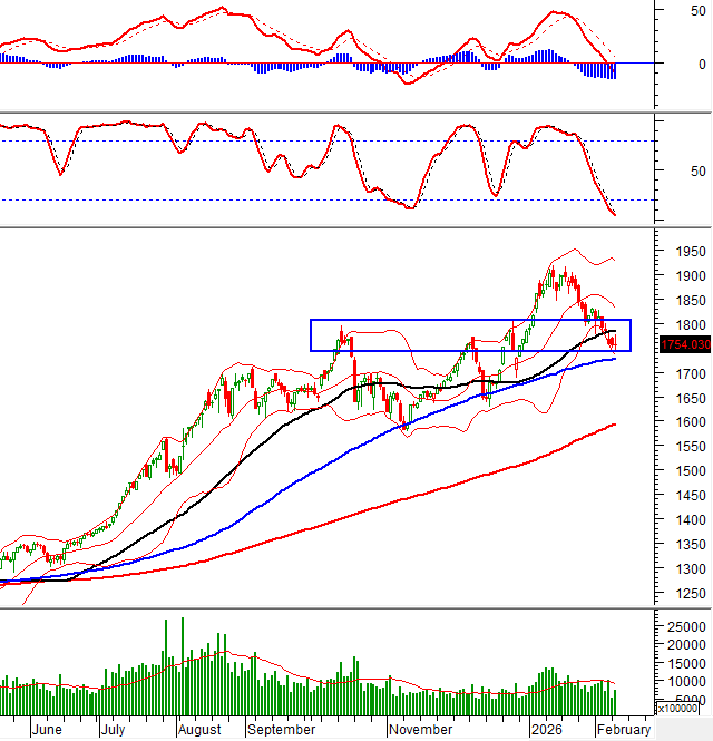 Chỉ số vẫn đang test lại đỉnh cũ đã bị phá vỡ của tháng 10/2025 và tháng 12/2025 (tương đương vùng 1,750-1,805 điểm). Nếu vùng hỗ trợ này được giữ vững, VN-Index có thể xuất hiện tín hiệu phục hồi trong những phiên tới.