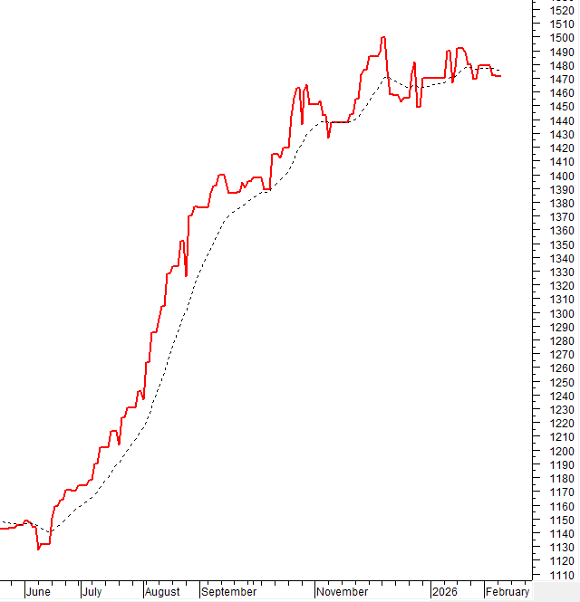 VN-Index tiếp tục giằng co với mẫu hình nến thân nhỏ kèm khối lượng giao dịch duy trì dưới mức trung bình 20 ngày cho thấy tâm lý khá phân vân của nhà đầu tư. Chỉ số vẫn đang test lại đỉnh cũ đã bị phá vỡ của tháng 10/2025 và tháng 12/2025 (tương đương vùng 1,750-1,805 điểm). Nếu vùng hỗ trợ này được giữ vững, VN-Index có thể xuất hiện tín hiệu phục hồi trong những phiên tới.