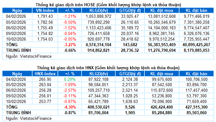 I. PHÂN TÍCH THỊ TRƯỜNG CHỨNG KHOÁN CƠ SỞ NGÀY 10/02/2026